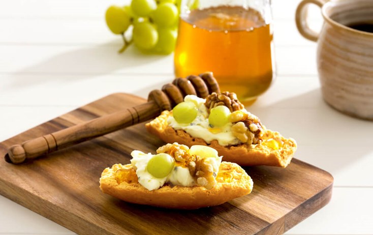 Tartine fromage, noix et raisins
